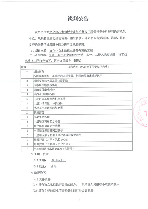 文化中心木地板土建部分整改工程——競(jìng)爭(zhēng)性談判