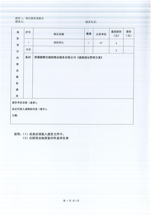 文曲新座建渣清運(yùn)詢(xún)價(jià)函