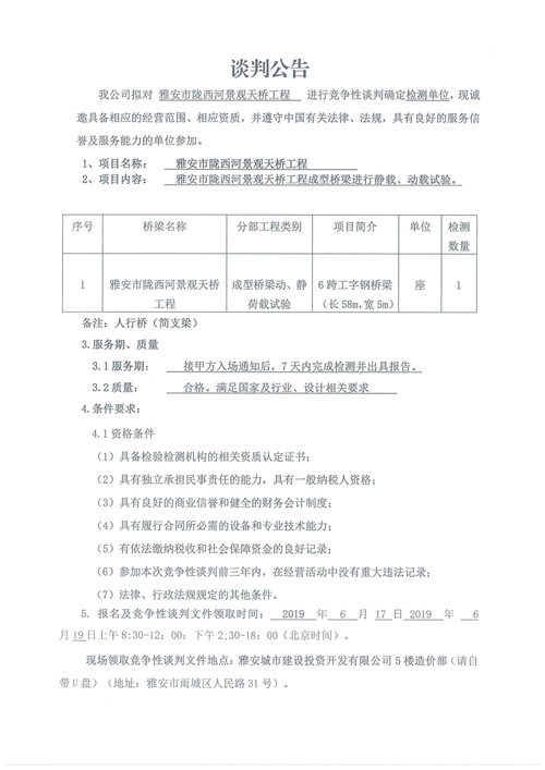 雅安市隴西河景觀天橋工程競(jìng)爭(zhēng)性談判公告