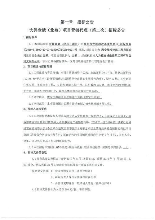 大興壹號(hào)(北苑)銷售招標(biāo)(第二次)招標(biāo)公告