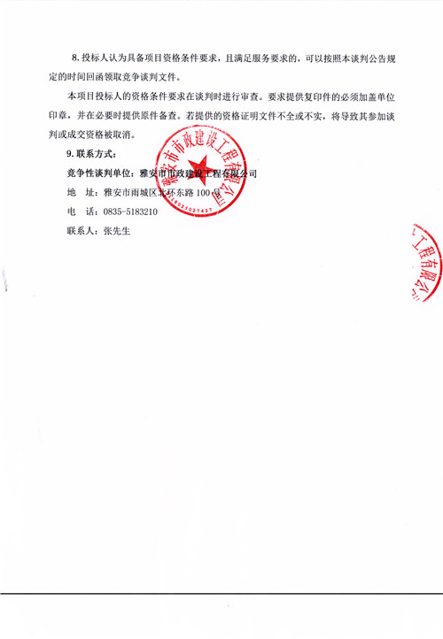 雅安市市政建設工程有限公司2021年井圈井蓋采購項目競爭性談判公告