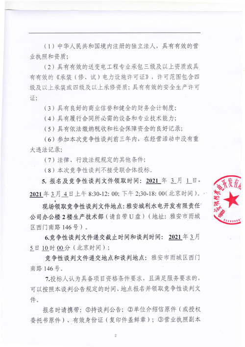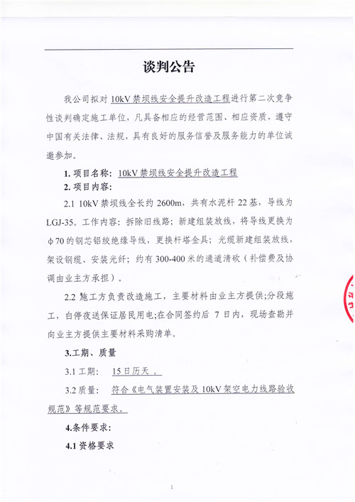 城利水電公司10kV禁壩線安全提升改造工程競(jìng)爭(zhēng)性談判公告(第二次)