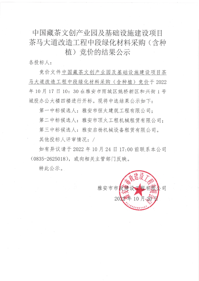 中國藏茶文創(chuàng)產(chǎn)業(yè)園及基礎(chǔ)設(shè)施建設(shè)項(xiàng)目--茶馬大道改造工程中段綠化材料采購(含種植)競(jìng)價(jià)的結(jié)果公示