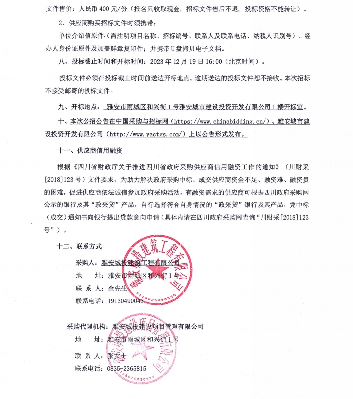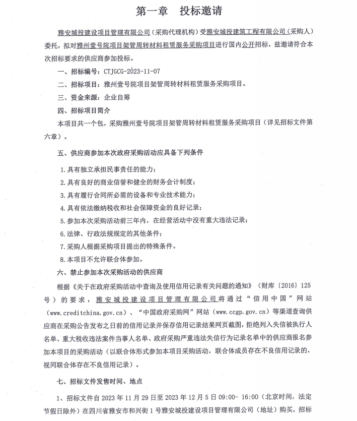 雅州壹號院項目架管周轉(zhuǎn)材料租賃服務(wù)采購項目投標(biāo)邀請公告