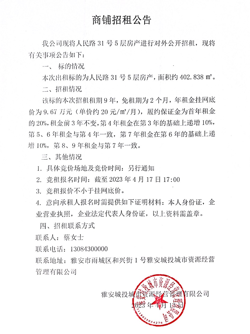 人民路31號(hào)5層房產(chǎn)商鋪招租公告