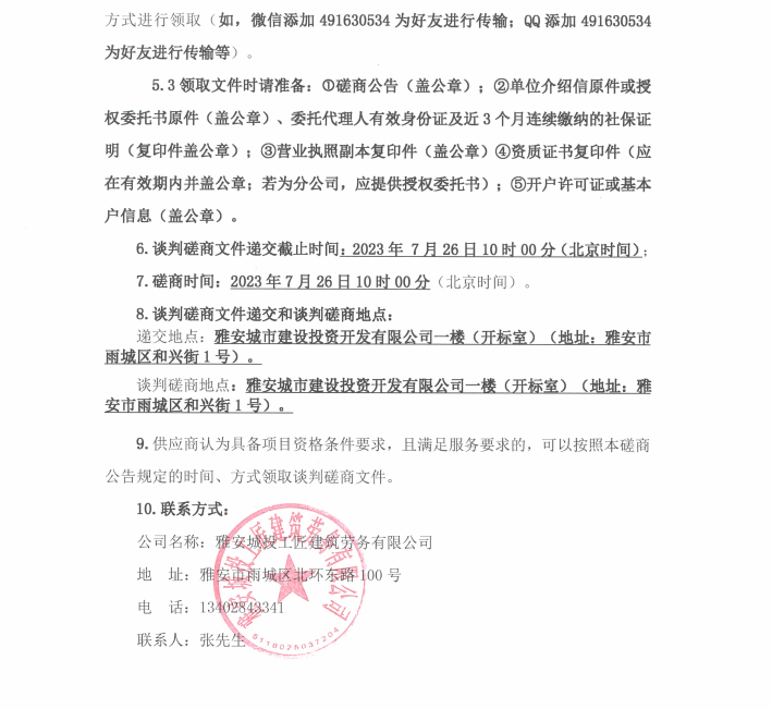 雅安市大興生態(tài)旅游建設項目機械租賃談判磋商公告