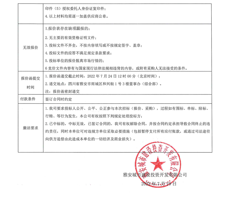 雅安城市建設投資開發(fā)有限公司清潔用品采購項目競價公告