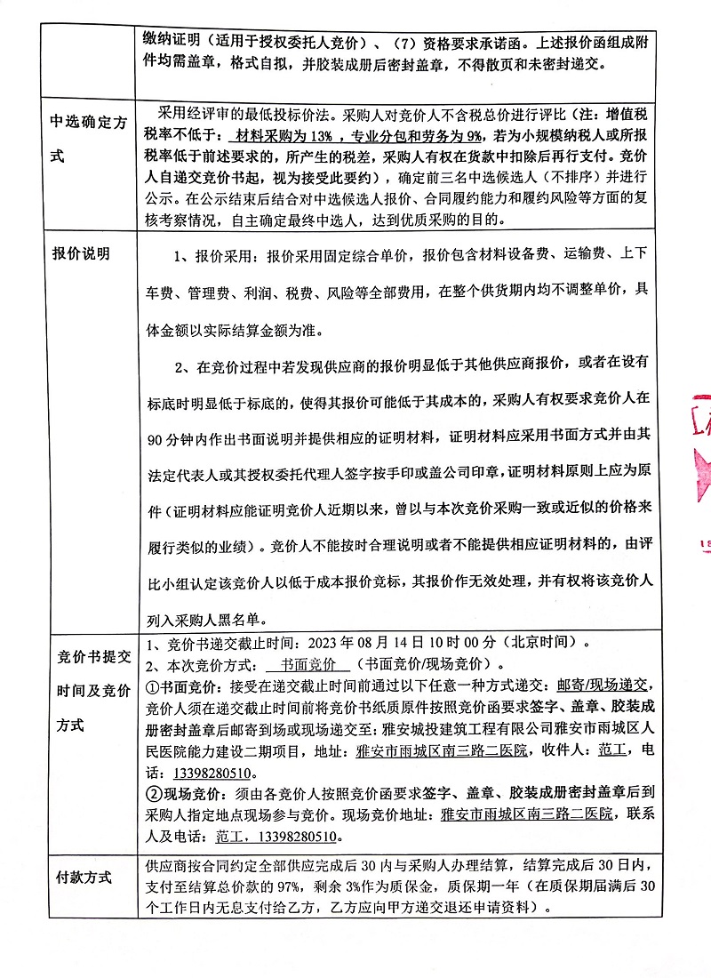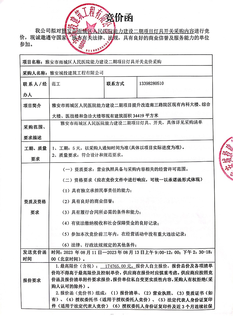 雅安市雨城區(qū)人民醫(yī)院能力建設(shè)二期項(xiàng)目燈具開關(guān)采購競價公告