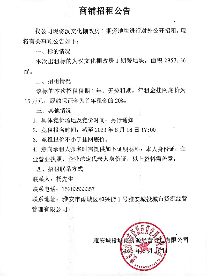 漢文化棚改房1期地塊招租公告