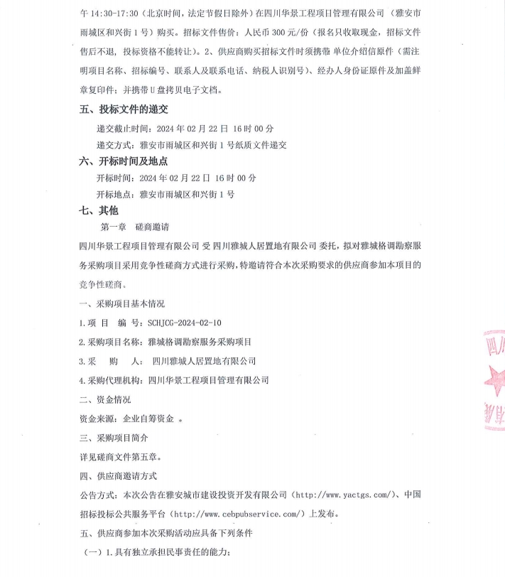 雅城格調(diào)勘察服務(wù)采購(gòu)項(xiàng)目磋商邀請(qǐng)公告