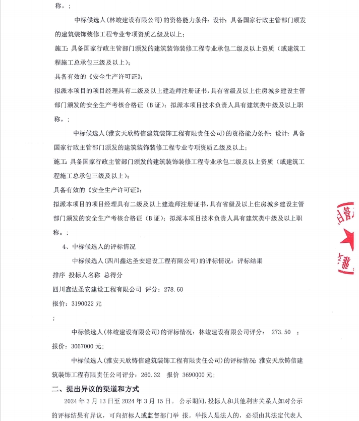 雅州壹號院項目售樓部和樣板間(3套)設(shè)計、施工項目(第二次)中標(biāo)候選人公示