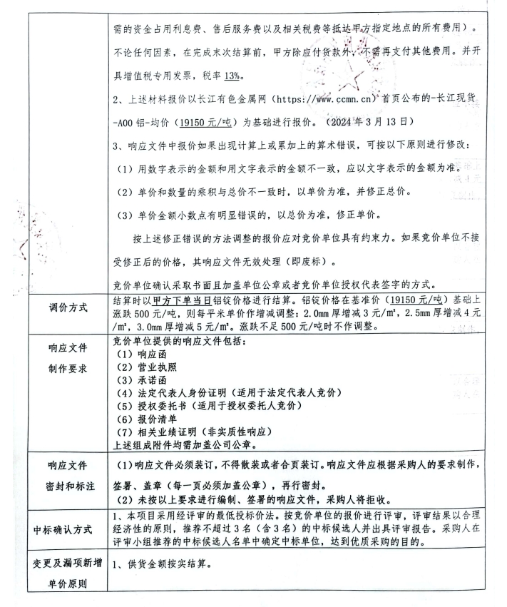 響應(yīng)文件格式-雅州壹號(hào)院鋁單板材料采購(gòu)