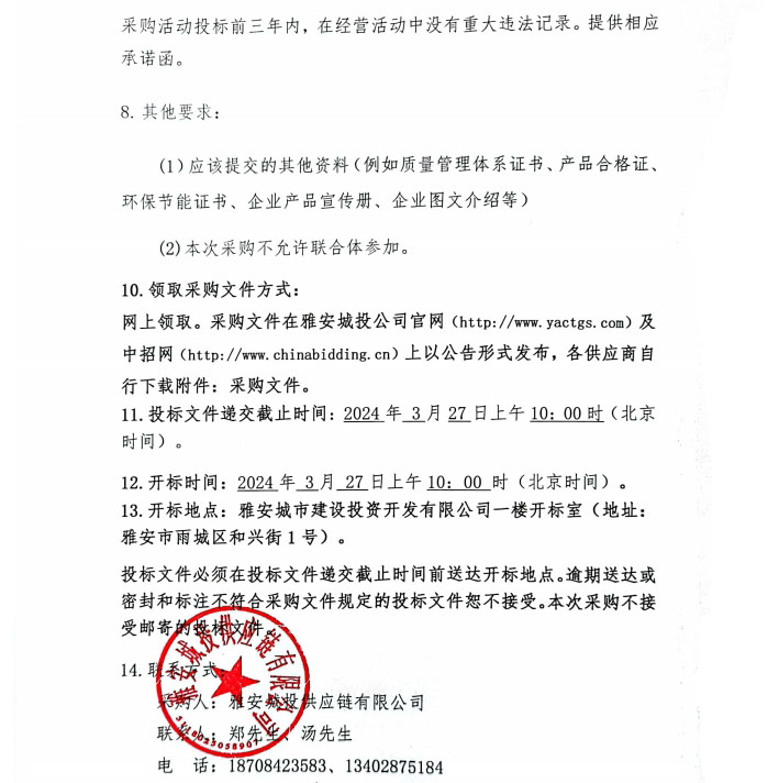采購文件--2024年3月-2025年2月雅安城投供應鏈有限公司水泥穩(wěn)定碎石采購(二次)