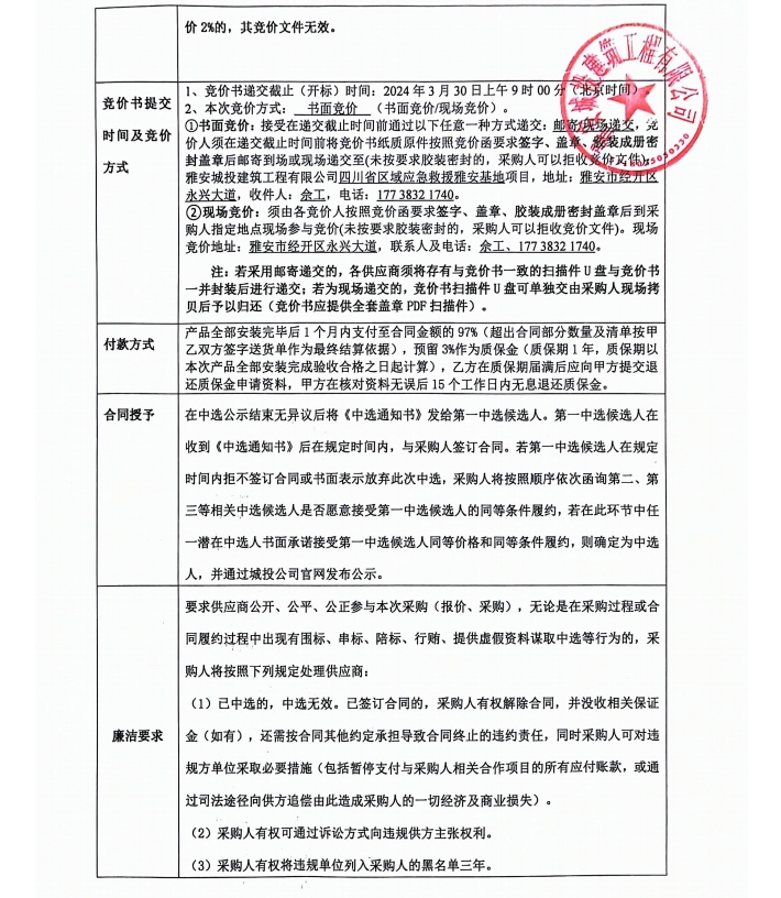 四川省區(qū)域應(yīng)急救援雅安基地項目樓棟大門金屬字體采購安裝競價公告