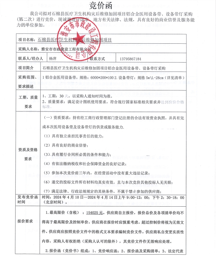 石棉縣醫(yī)療機(jī)構(gòu)災(zāi)后維修加固項(xiàng)目鋁合金醫(yī)用設(shè)備帶、設(shè)備帶燈采購(gòu)(第二次)競(jìng)價(jià)公告