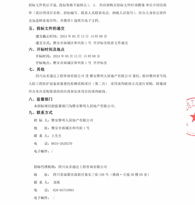 雅州壹號院人防工程防護設備質(zhì)量委托檢測采購項目(第二次)公告