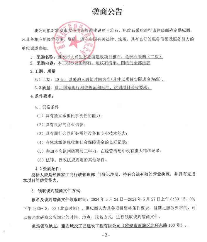 附件1:雅安市大興生態(tài)旅游建設(shè)項(xiàng)目雅石、龜紋石(二次)采購(gòu)磋商文件