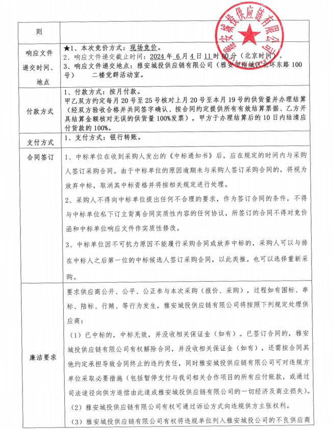 雅安城投供應(yīng)鏈有限公司碎石采購競價(jià)公告