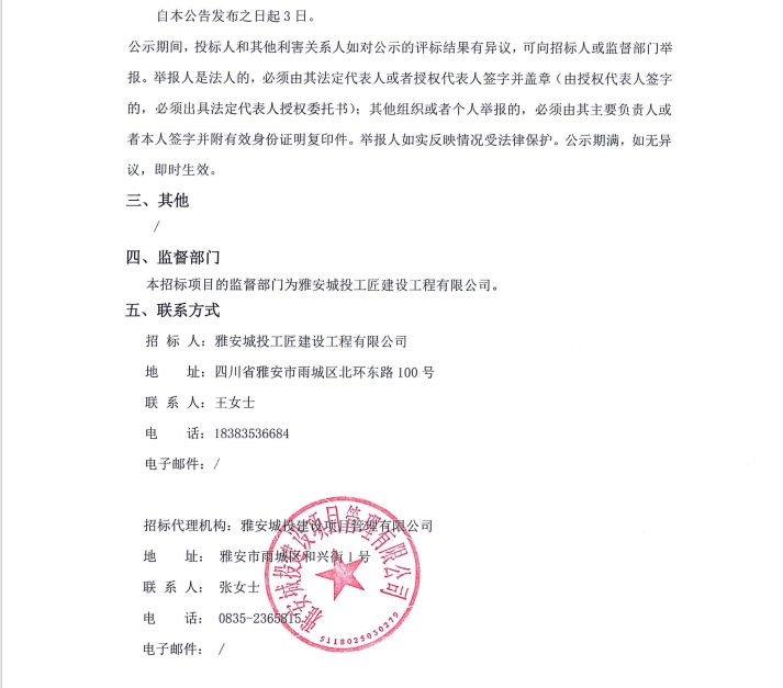雅安市大興生態(tài)旅游建設(shè)項(xiàng)目電梯采購(gòu)安裝(第二次)中標(biāo)候選人公示