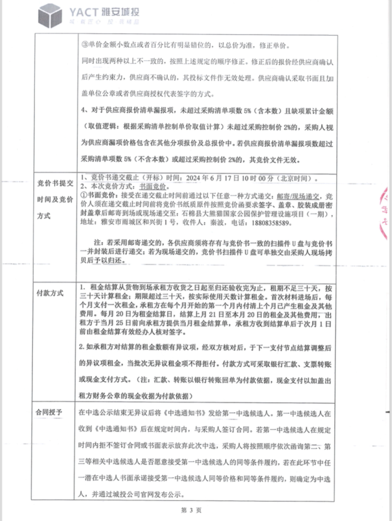 石棉縣大熊貓國家公園保護(hù)管理設(shè)施項(xiàng)目(一期)管件材料租賃(第二次)競價(jià)公告