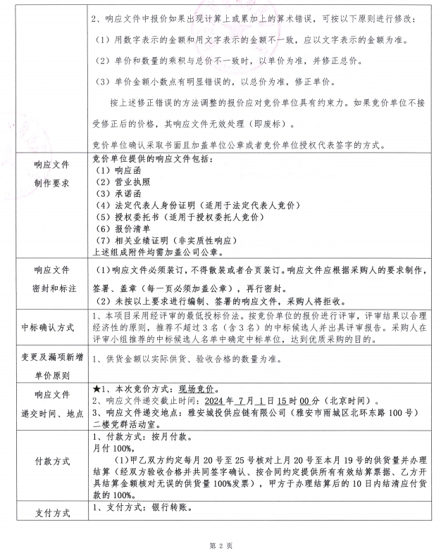 附件1:競(jìng)價(jià)函--雅州壹號(hào)院方矩管采購(二次)