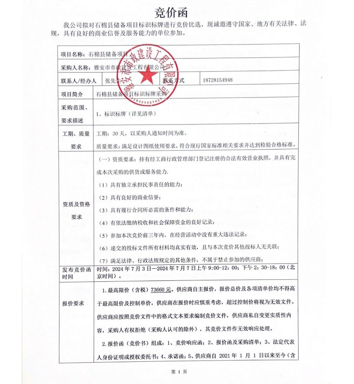 石棉縣儲備項(xiàng)目標(biāo)識標(biāo)牌競價(jià)公告