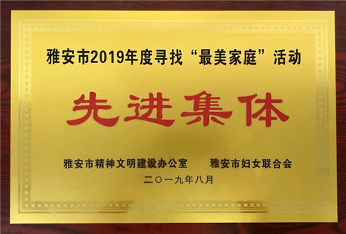 9月27日,城投公司雅安市2019年尋找“最美家庭”活動先進集體稱號。